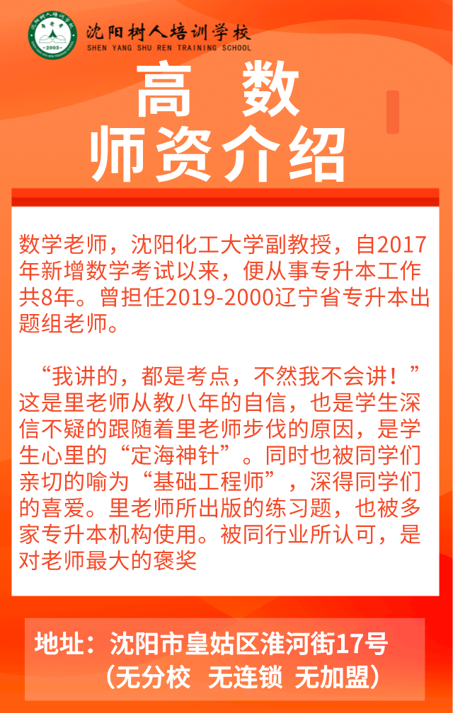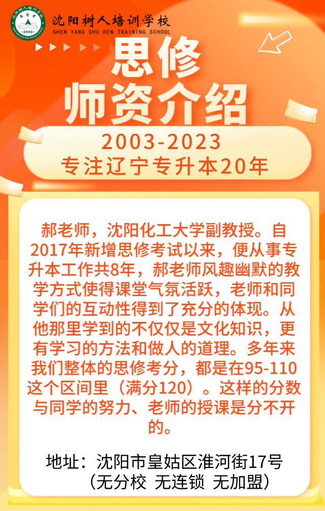沈陽樹人培訓學校:專注專升本20年,無分校無連鎖無加盟。