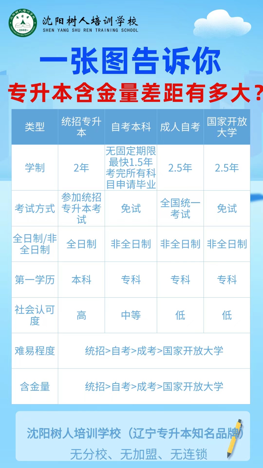 沈陽樹人培訓學校:專注專升本20年,無分校無連鎖無加盟。