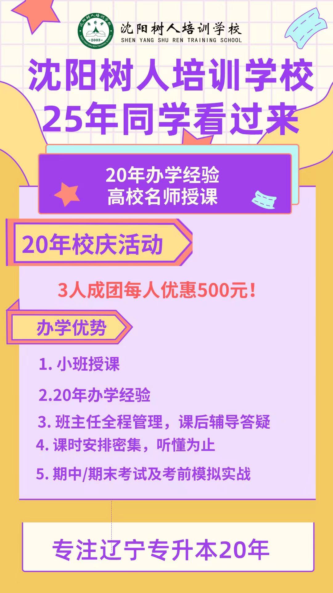 沈陽樹人培訓學校:專注專升本20年,無分校無連鎖無加盟。
