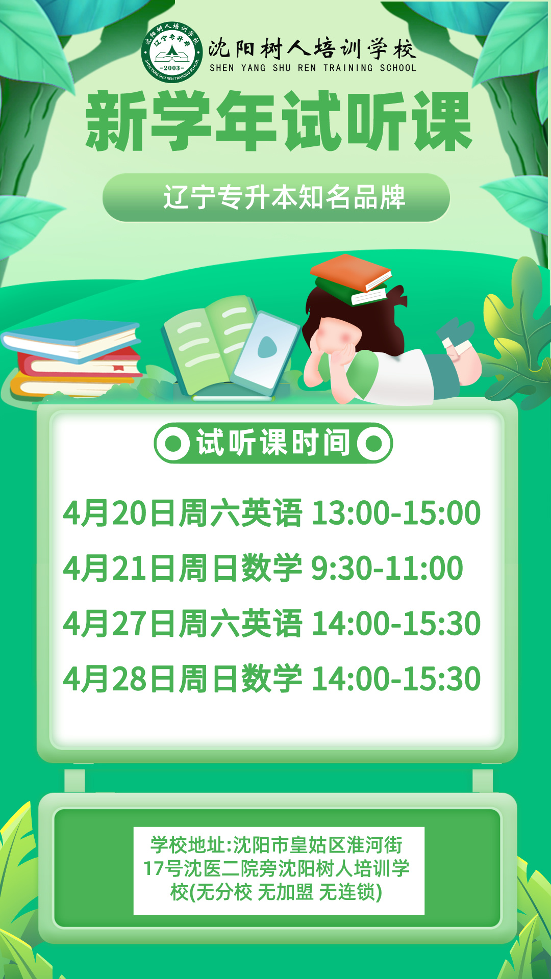 沈陽樹人培訓學校:專注專升本20年,無分校無連鎖無加盟。